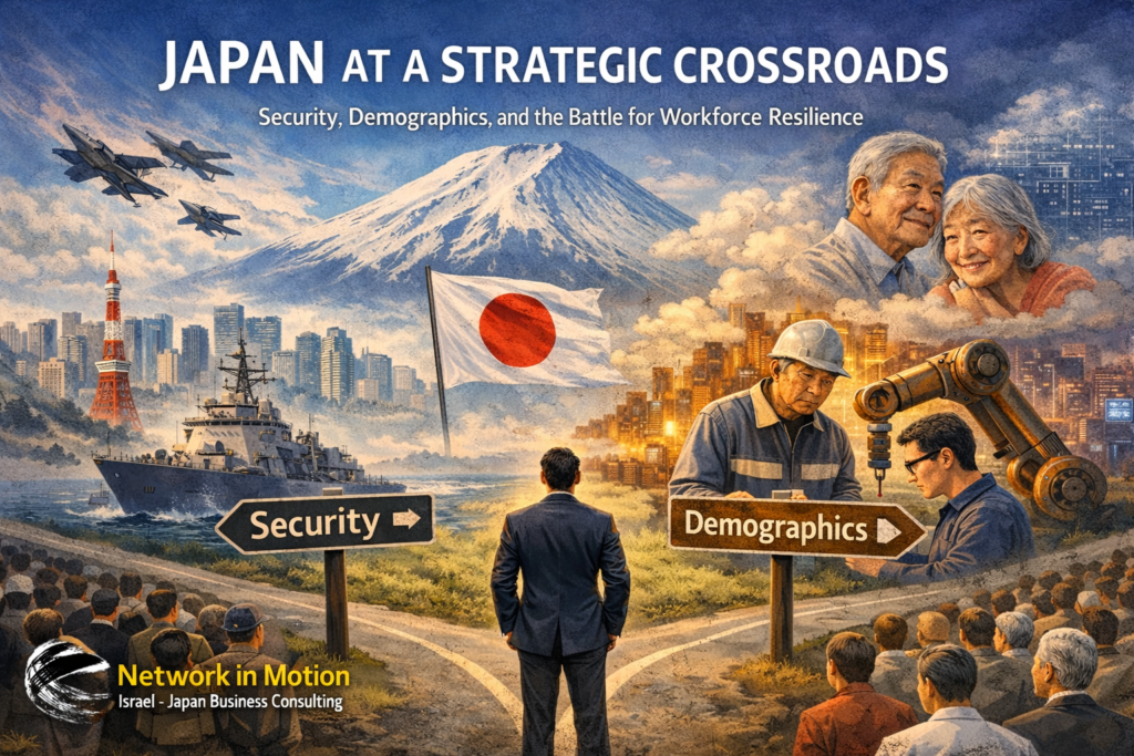 יפן בצומת: ביטחון, דמוגרפיה והמאבק על חוסן כוח האדם כיצד לחצים ביטחוניים אזוריים וקיטון דמוגרפי מעצבים מחדש את סדרי העדיפויות הלאומיים של יפן מאת: עירא פריגת, מייסד חברת היעוץ Network in Motion Ltd. יפן ניצבת כיום בפני שני אתגרים לאומיים מרכזיים, אשר לרוב נדונים בנפרד – אך בפועל הולכים ומשתלבים זה בזה. יחד, הם מעצבים […]