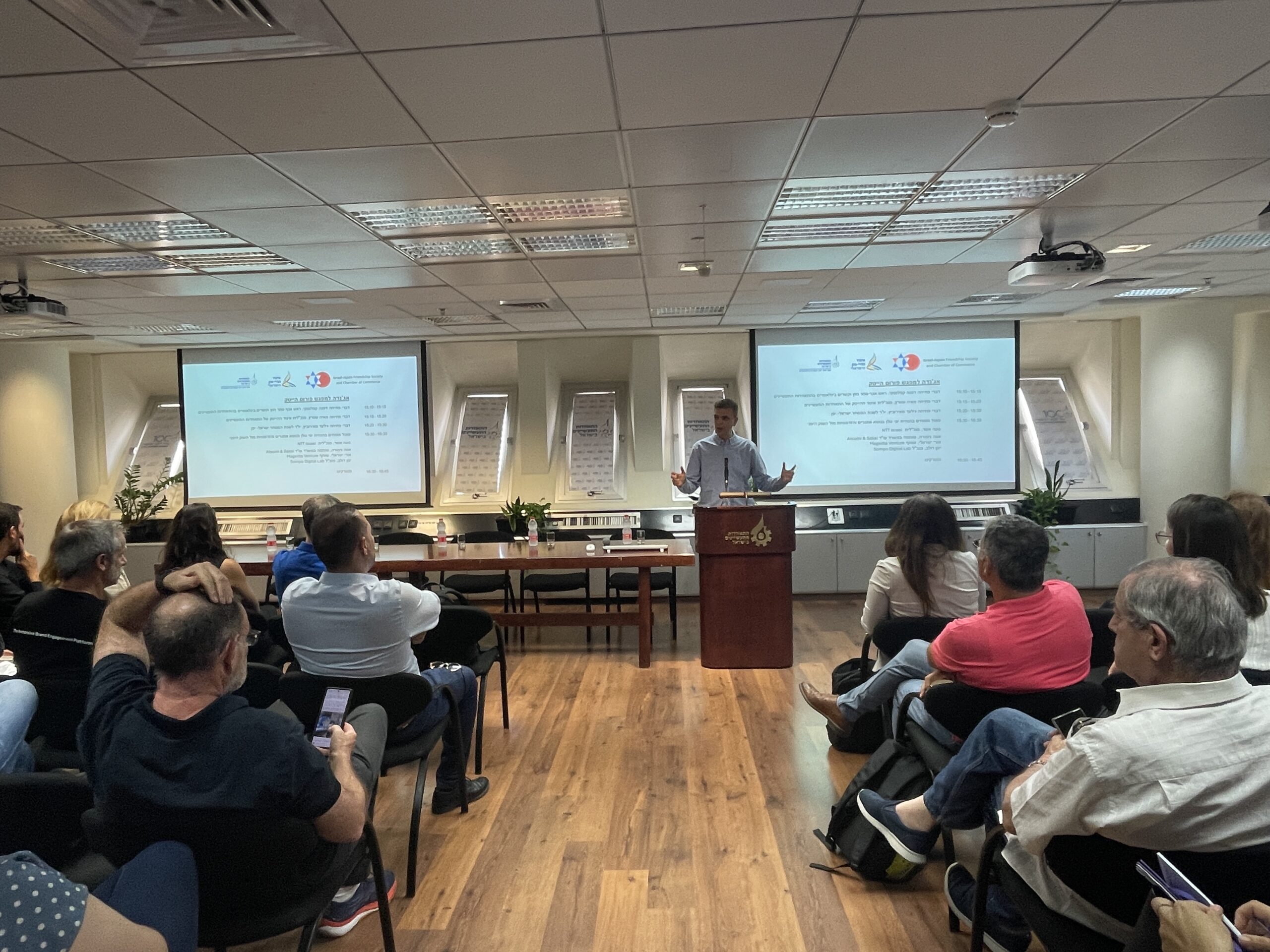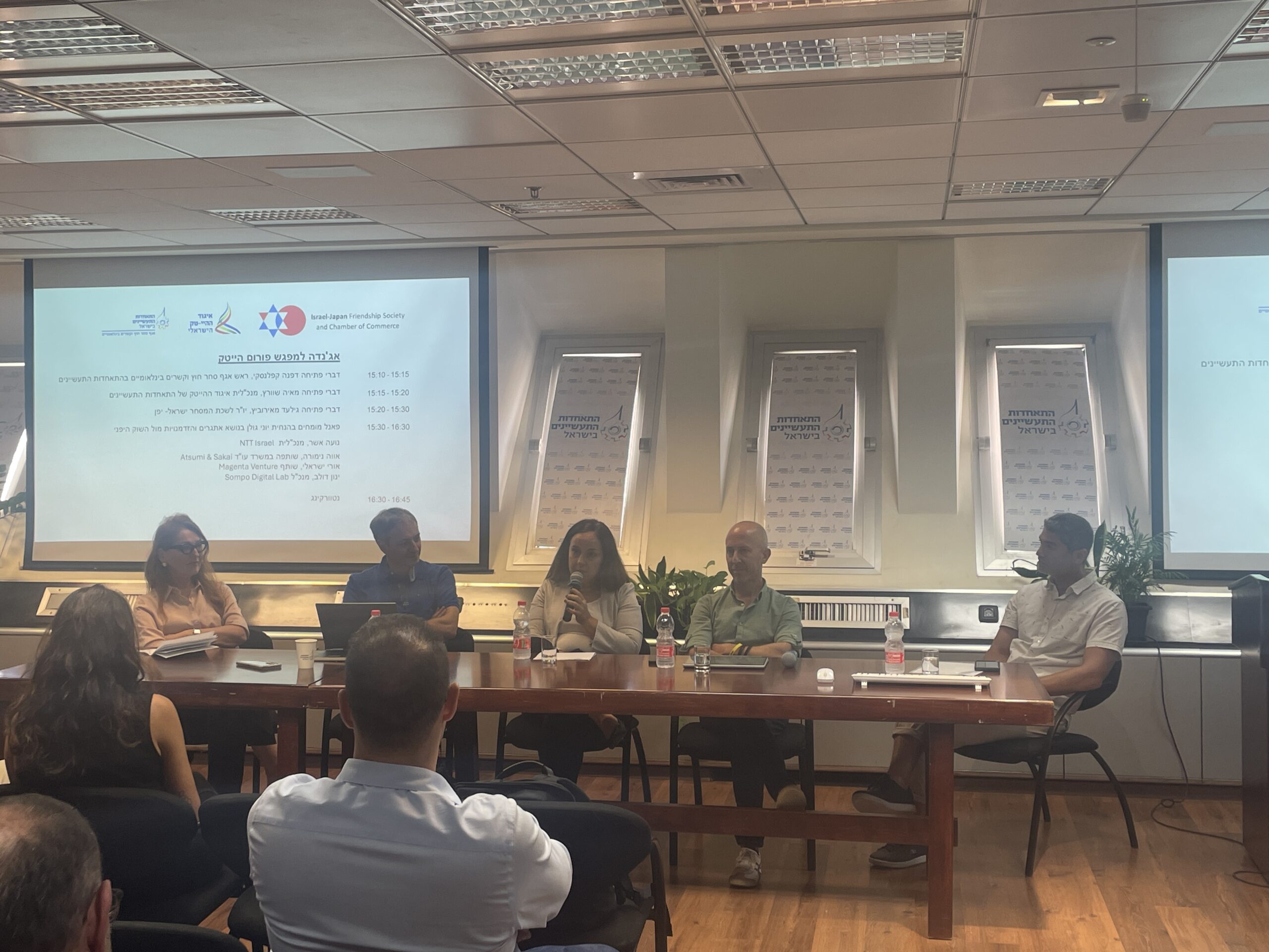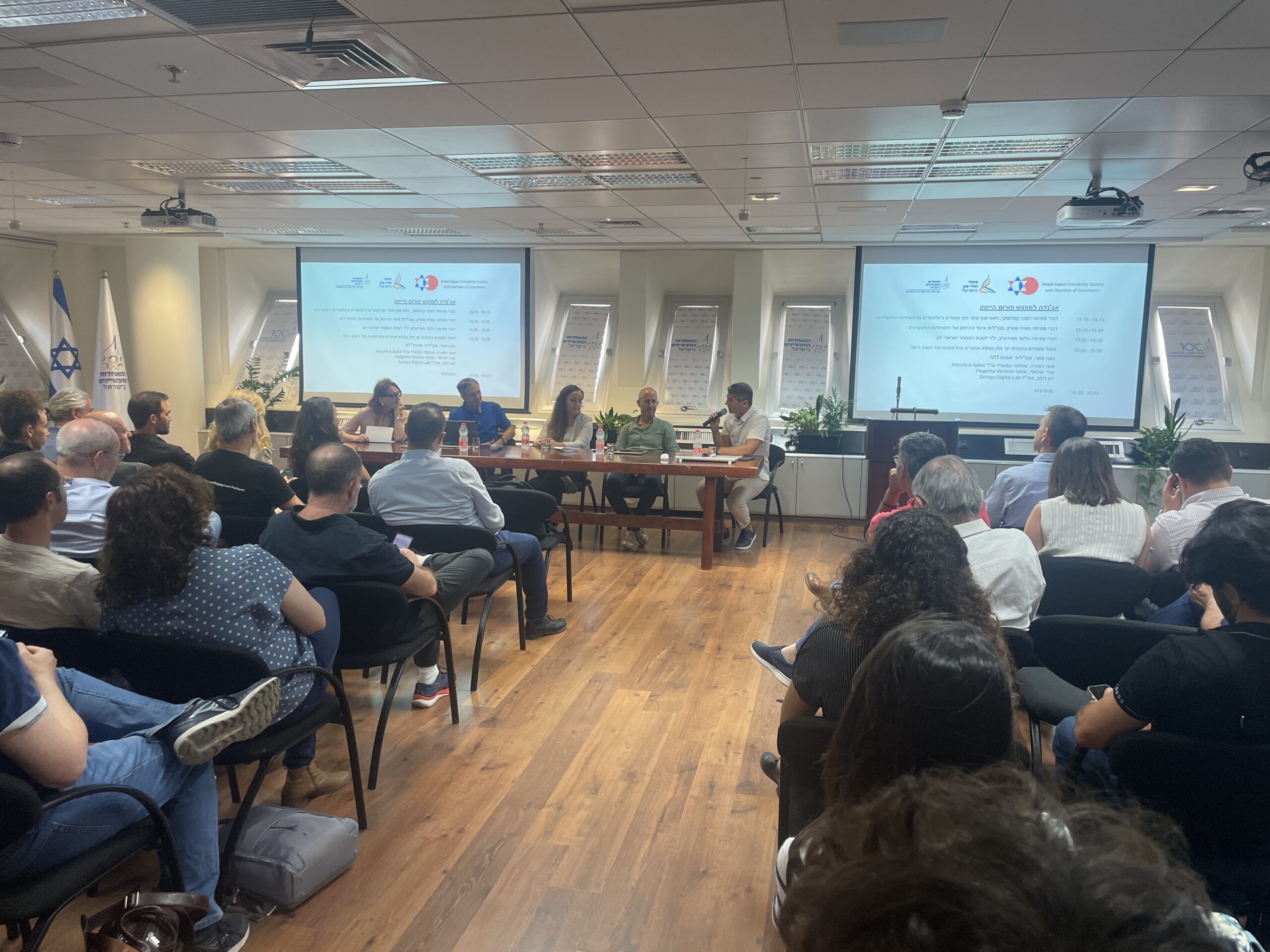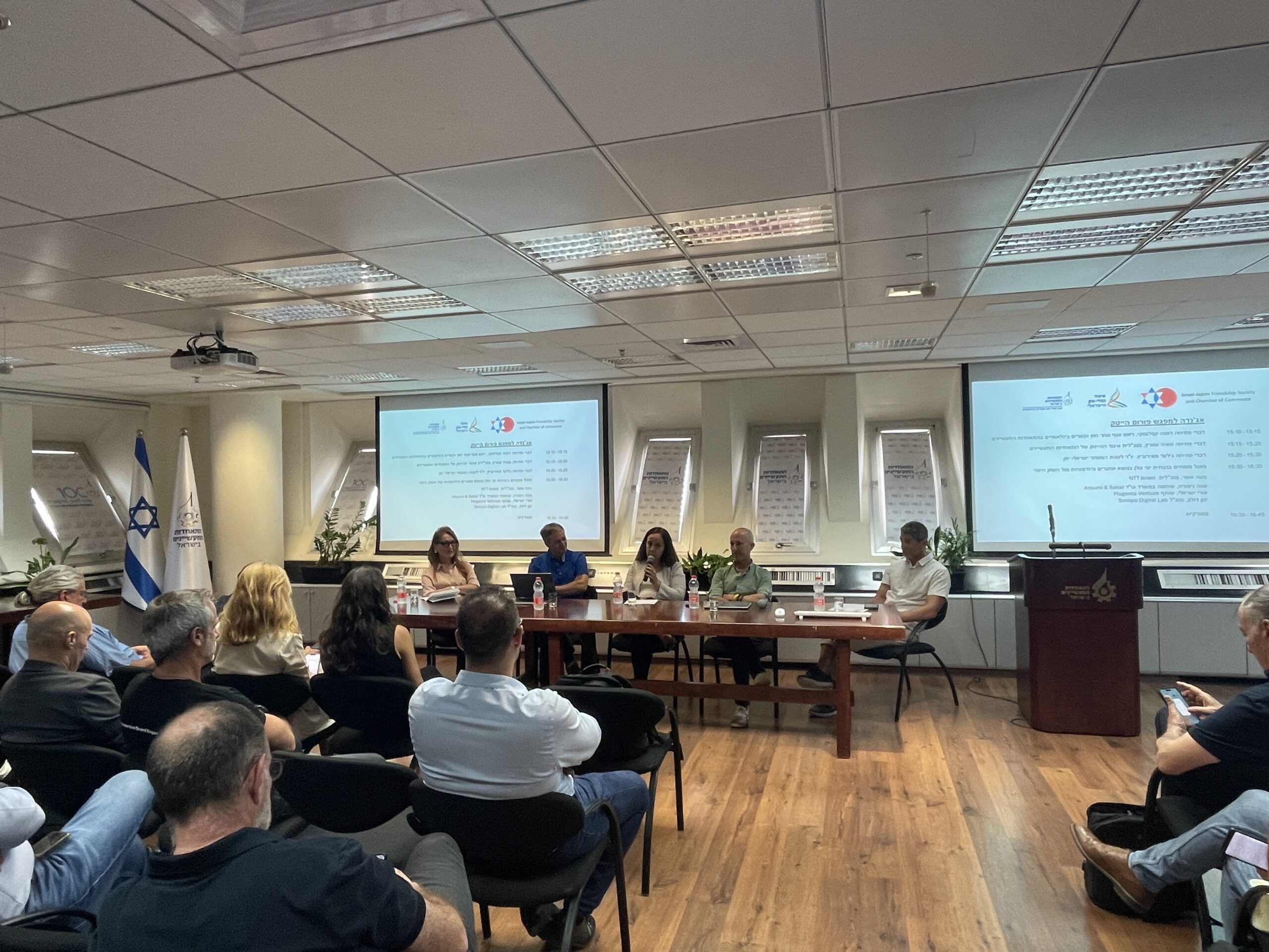 A forum meetup in collaboration with the High-Tech Association of the Manufacturers Association of Israel. The event included a panel of experts, featuring four senior Israeli executives working in Japanese companies: Noa Asher, CEO of NTT Israel; Eva Nimura, Partner at the Japanese law firm Atsumi & Sakai; Yinon Dolev, CEO of Sompo Israel; and Uri Israeli, Managing Partner at Magenta Investment Fund.
